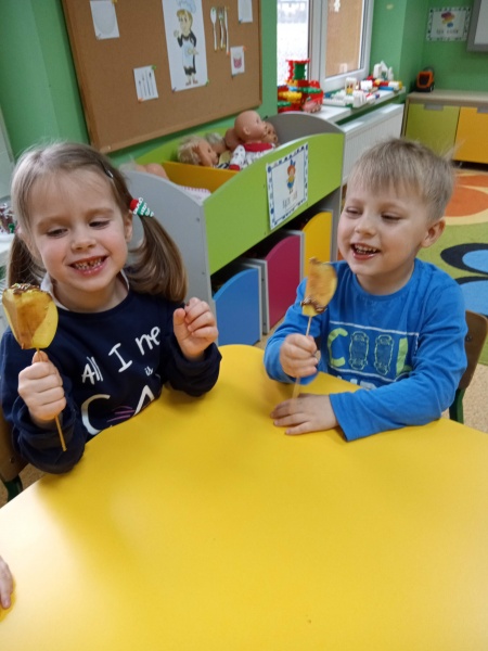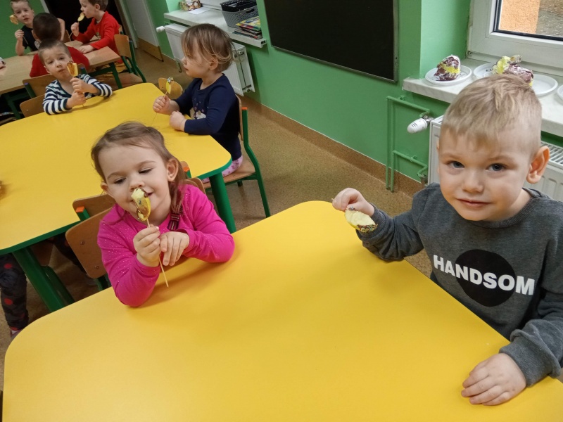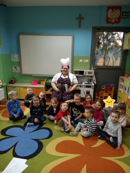 Motylki realizując temat: "Poznajemy pracę kucharza", postanowiły zaprosić do siebie Panią kucharkę z przedszkola, Panią Anetkę, aby zdradziła im tajniki smacznego przyrządzania potraw. Pani Anetka opowiedziała jakie sprzęty i akcesoria są potrzebne w kuchni do gotowania, zwróciła uwagę na swój profesjonalny strój, który jest ważny przy zachowaniu czystości w czasie przygotowywania posiłków. Nie obyło się bez pytań ze strony dzieci, na które otrzymały bardzo szczegółowe odpowiedzi. Pani Anetka specjalnie dla Motylków wyczarowała wspaniałe drugie śniadanko które było smaczne i zdrowe. Na koniec dzieci wspólnie z Panią Kucharką zatańczyły i zaśpiewały przygotowaną na tą okazję piosenkę. Zachwyt nad magią gotowania towarzyszył Mróweczkom do końca dnia!